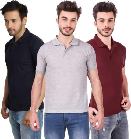 Men’s Polo Neck Half Sleeve Casual Tshirt Combo of Maroon, Black, Grey colors (Pack of 3)