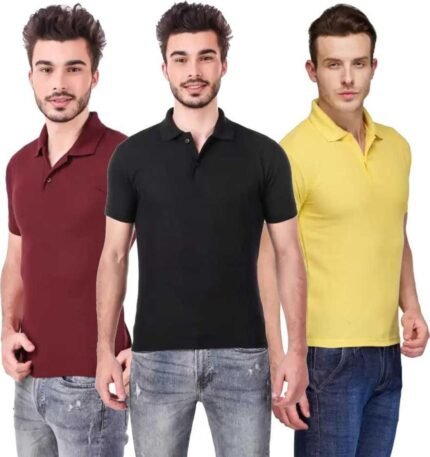 Men’s Polo Neck Half Sleeve Casual Tshirt Combo of Red, Black, Yellow colors (Pack of 3)