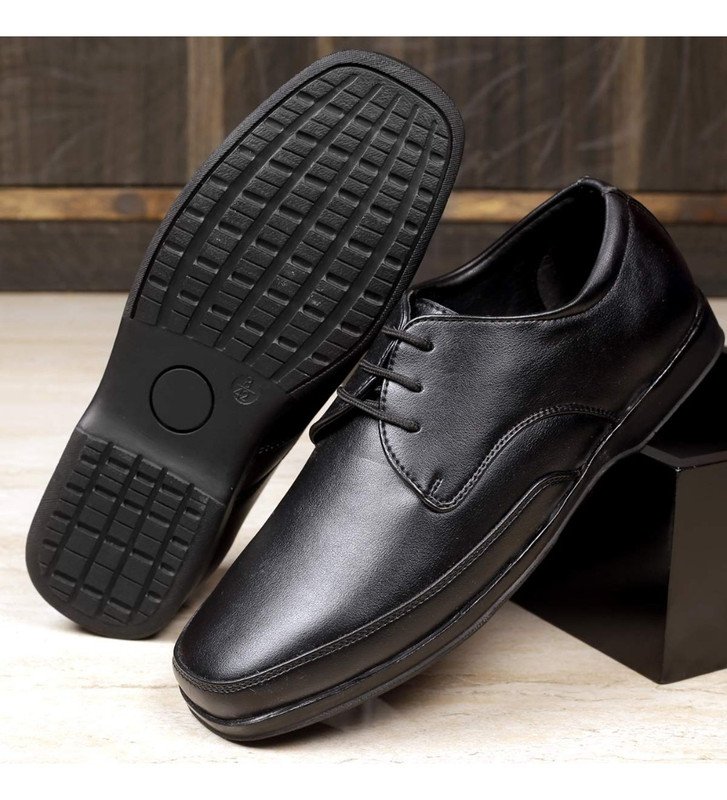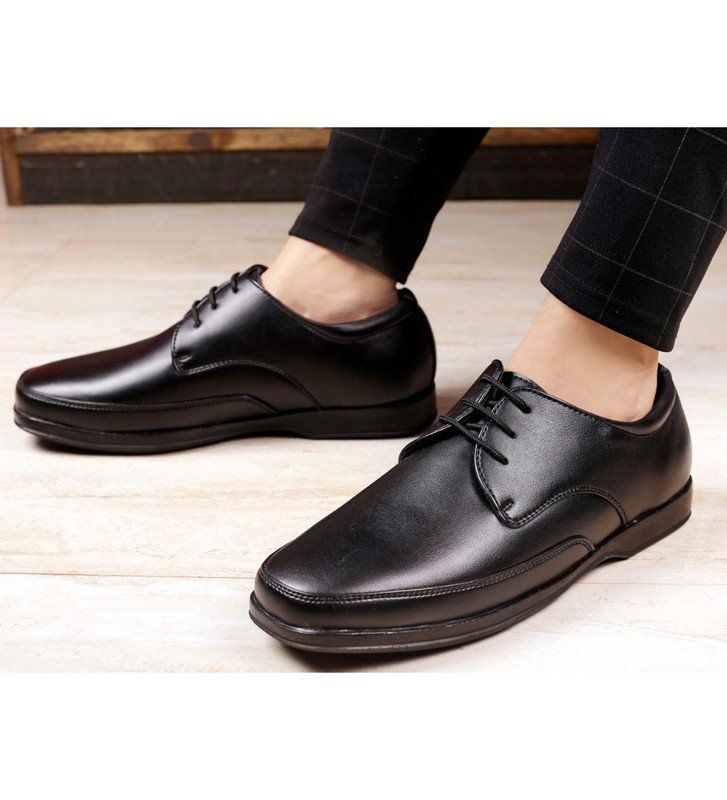 Men’s Faux Leather Formal Shoes, ? Color: Black, ? Material: Faux Leather, ? : 6, ? Closure Type: Lace-Up, ? Heel Type: Flat, ? Type: Formal Shoes, ? Disclaimer: The color of actual product may vary slightly from the images provided due to photographic lighting conditions and difference in screen resolutions.