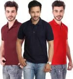 Men’s Polo Neck Short Sleeve Casual Tshirt Combo of Dark Blue, Red, Maroon colors (Pack of 3)