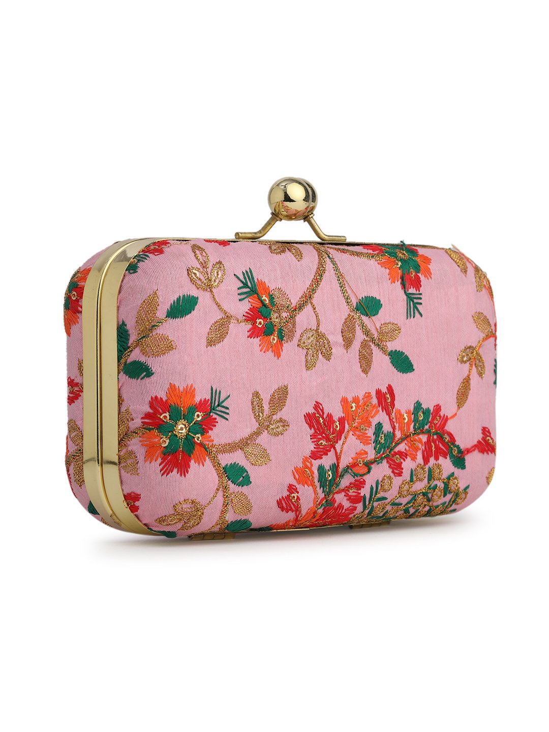 Pink & Gold Embroidered Box Clutches For Girls and womens(01)